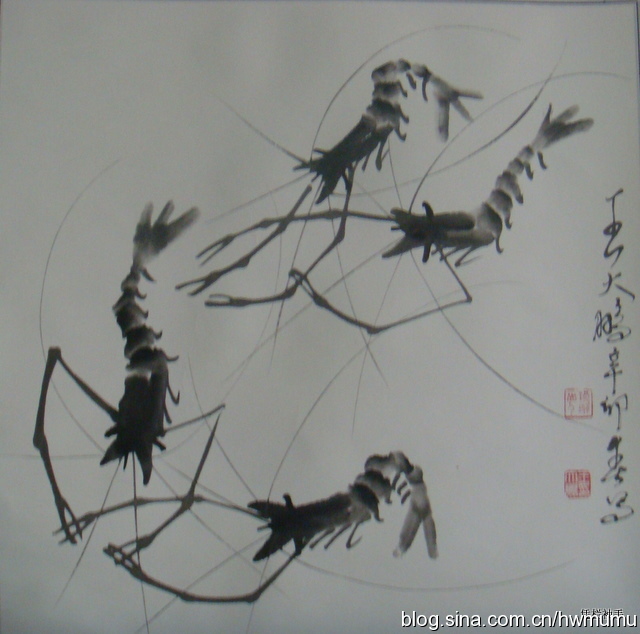 王教授年近古稀,但仍身手矫健,在我提出合影请求前已取下了一幅,看上面合影王教授背后的空墙,原本是挂《虾》的。王夫人赶上来帮忙打包并嘱咐道:“这个价钱,别在外面讲呵!”,我点头答应着:“好的,不讲!”