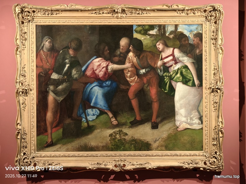 其描绘的故事,发生在上千年前。但提香大胆地将 16 世纪威尼斯城的人文风貌融入画中:他令画中除基督以外的所有人物,都穿上了文艺复兴时期的“时装”。