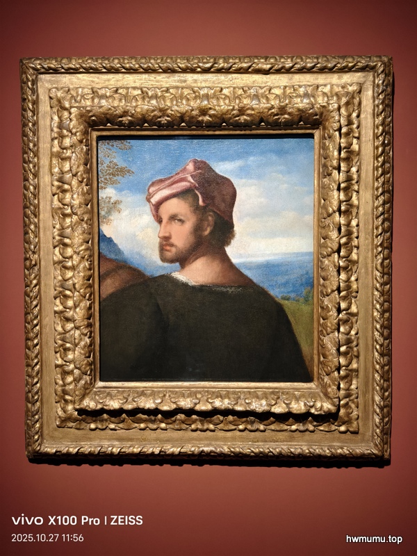 《男子头像》,提香,约1508至1510年,布面油画,770×701×86 mm。该画应为《基督教赎妇人》的组成部分,这名男子的头像不知何时被从主画面中分离。在主体画作右侧仍可看到这位男子穿着案数长袜的膝盖。整个构图中,这个人物是唯一一个将目光从正在发生的场景中移开、望向观众的角色,因此有人推测这可能是艺术家的自画像。