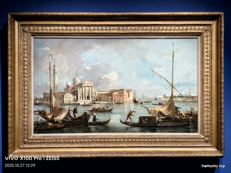 《圣乔治马焦雷岛》,弗朗切斯科·瓜尔迪,约1760年,布面油画,1039×1522×138 mm。水城威尼斯数个世紀以来一直为艺术家带来灵感。瓜尔迪是威尼斯风景画领域最杰出的艺术家之一,这幅画创作于他职业生涯早期。画中柔和的倒影、熙攘的人物以及鲜明的明暗对比,使该画被视为他最优秀的作品之一。