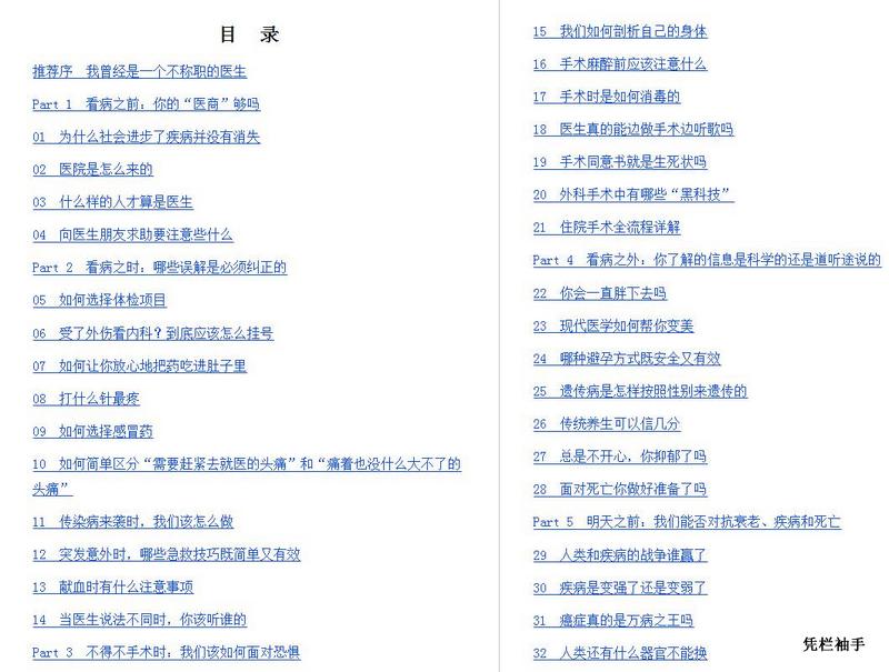 这个是从病人家属的角度出发来说关于看病所需要了解的常识,包括如何给医生送红包居然也有提及,好玩。