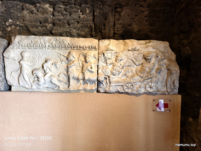 最边上的希拉波利斯剧院画廊里展示了在希拉波利斯剧院里的发现。这些是曾经装饰剧院的原创作品,其中许多已经修复。复制品已被用于剧院的重建。左边的那个是哈迪斯,罗马时期,2 世纪末。