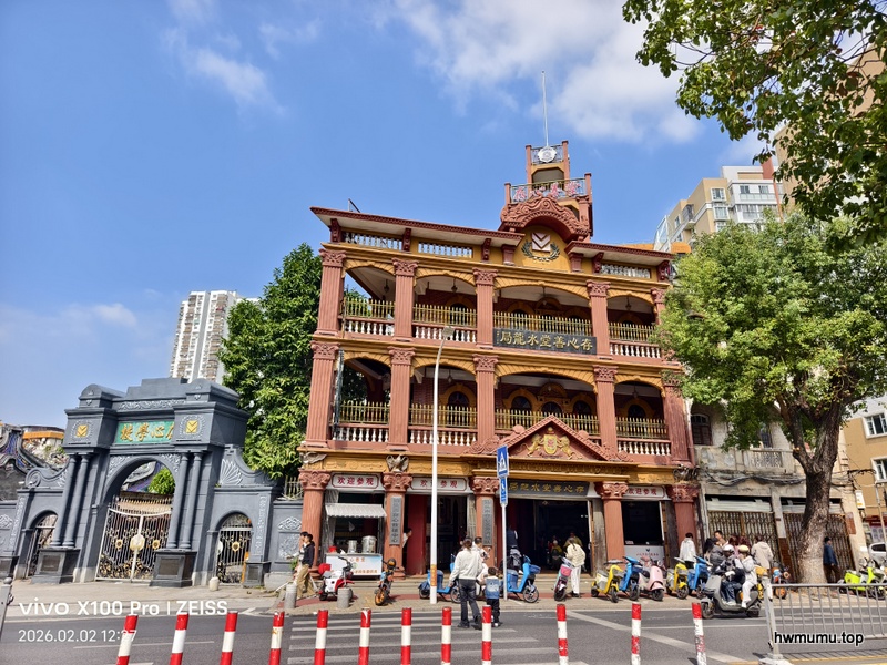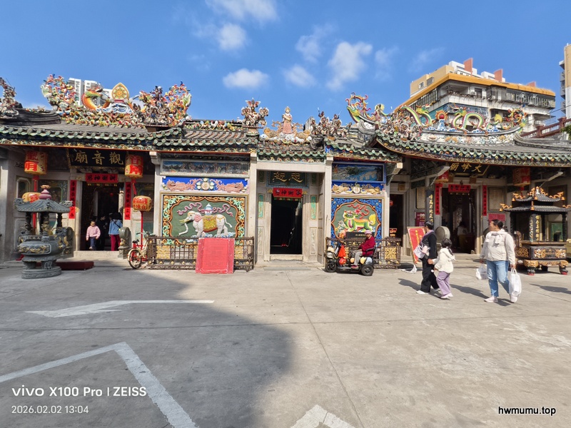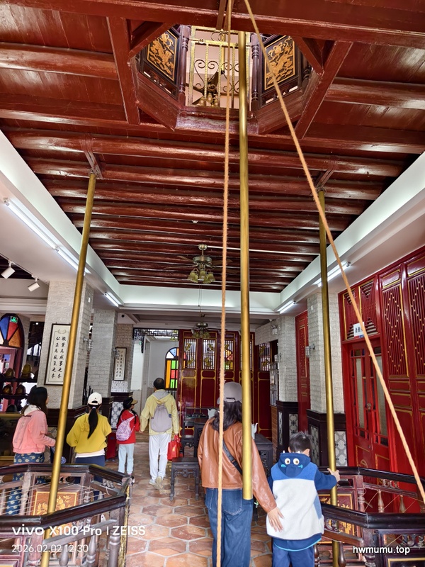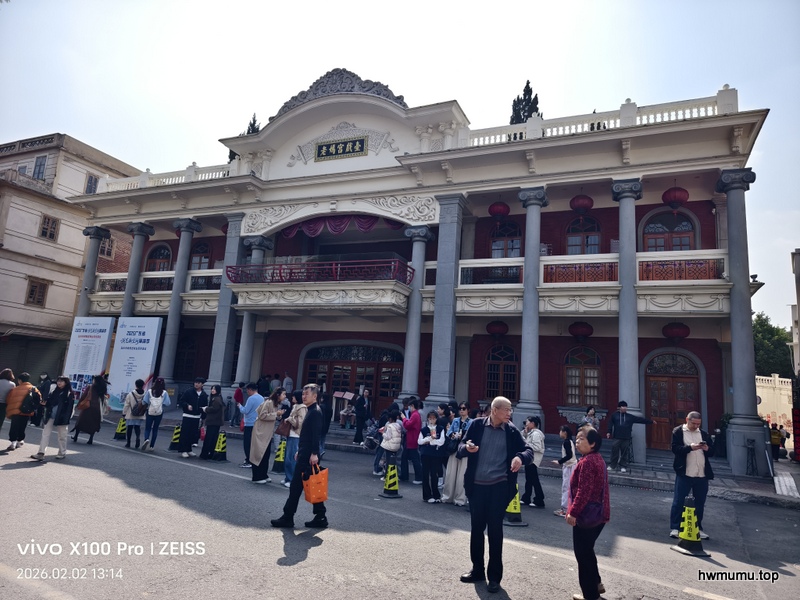 戏台建筑融合中西风格,外墙采用红色清水砖与柚木门窗,内部设有2.7米高的汉白玉妈祖像及明代古井“龙泉”,井深4米并保存明代青砖垒砌结构。现内部陈列潮绣、木雕等非遗展品,配备两层茶座及投影设施,可容纳200余人观演。开放时间为周二至周日9:00-12:00、14:00-18:30。