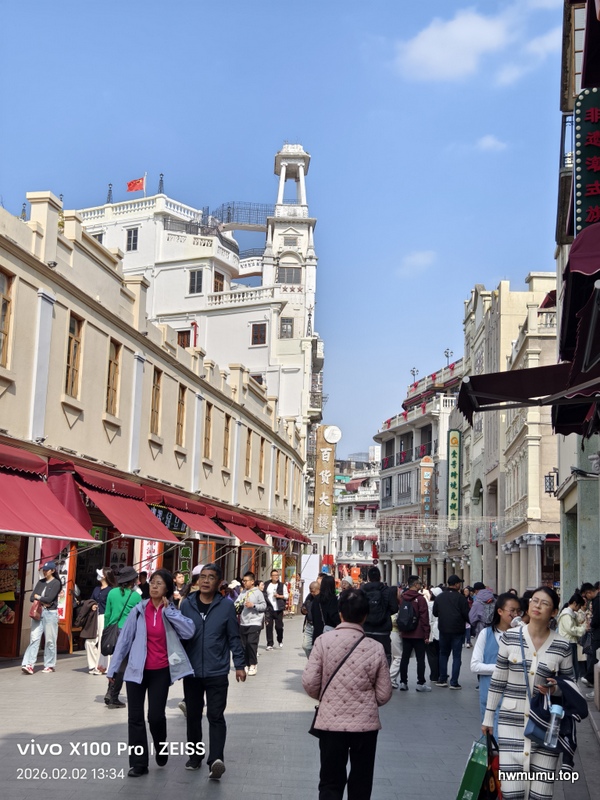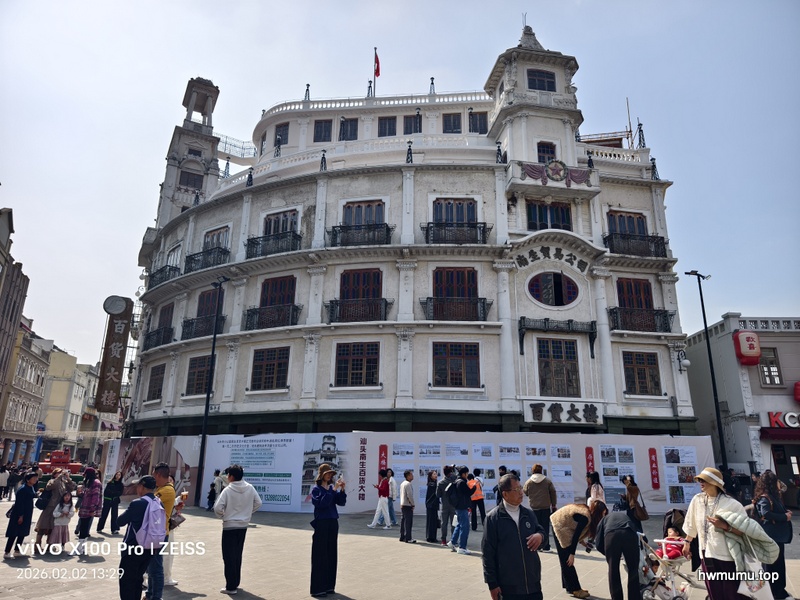 在安平路上看百货大楼。安平路西南起西港,东北至小公园,全长1130米,宽14.3米,始建于1926年,1968至1975年曾改称人民大道,1980年后恢复原名 。该路是小公园开埠区的核心商业街,沿街有汕头百货大楼(原南生贸易公司)及天华百货商店,20世纪80年代为汕头最繁华的商业区,设有灯光夜市 。2016年起实施保护性修缮,所属街区于2021年列入第三批广东省历史文化街区。