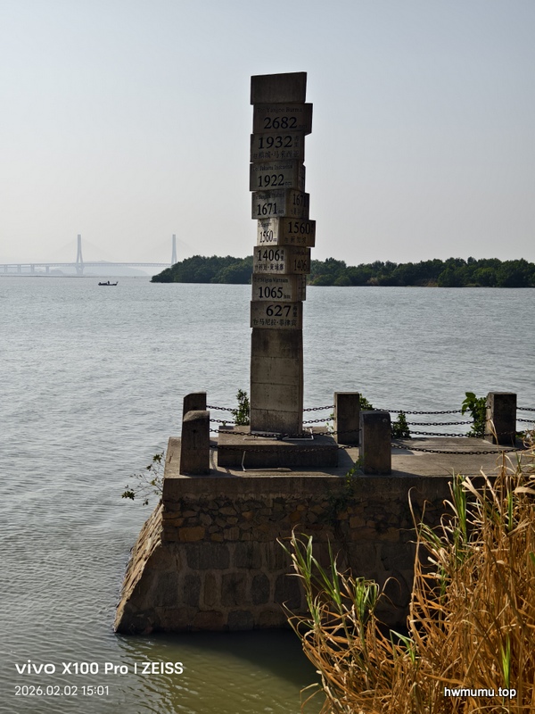 过番纪念柱由许多指向不同的三角形水泥墩层叠构成,上面刻着从西堤古码头出发到东南亚国家的距离。漂洋过海的漫漫长路,充满了艰辛,也承载了一代代海外华侨的梦想和乡愁。站在这里,仿佛还能看到昔日从码头出发,漂洋过海外出谋生的潮人的身影。