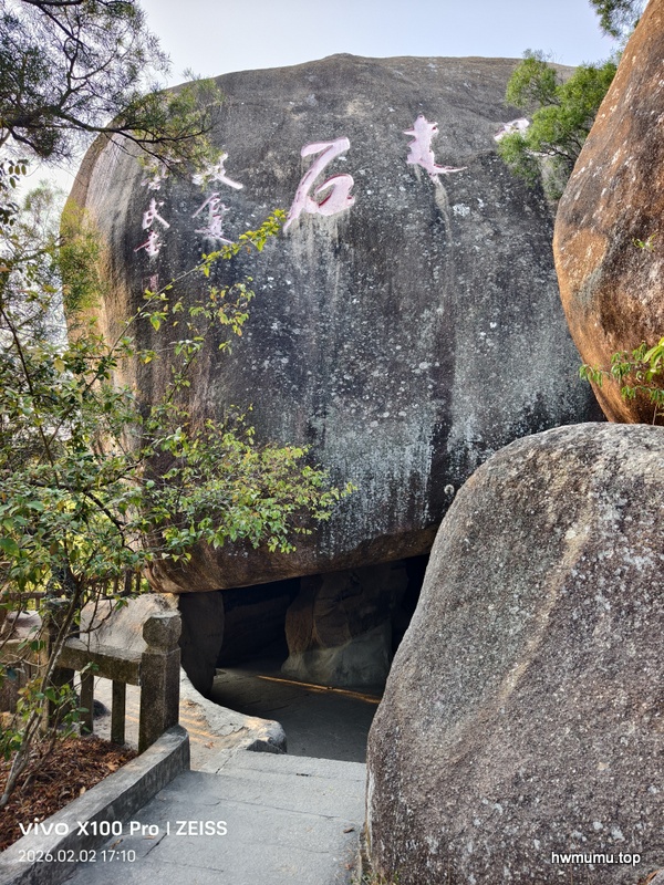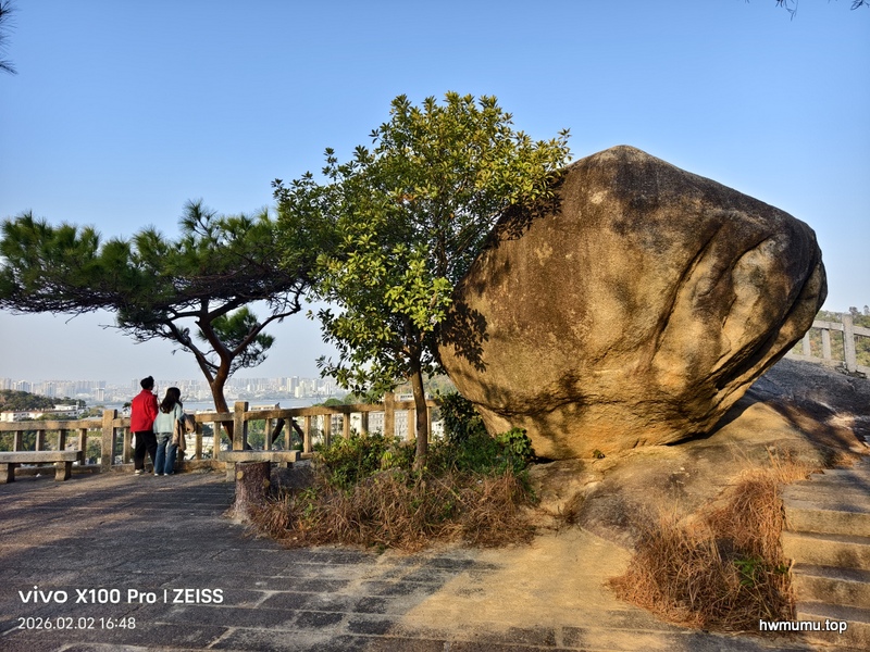 “飞来石”景观,有重逾百吨的悬空花岗岩巨石。