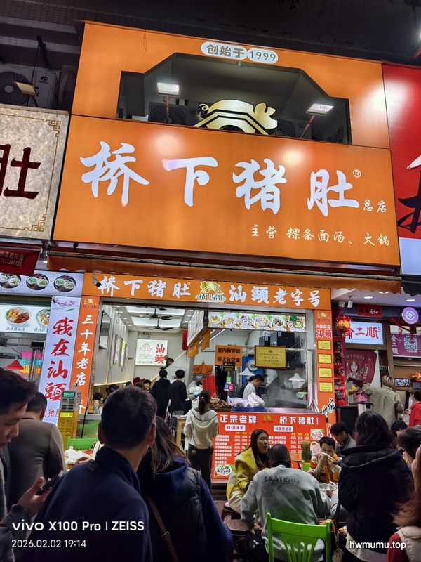 先吃了个反沙拼盘,一边走一边吃,到了桥下猪肚坐下。