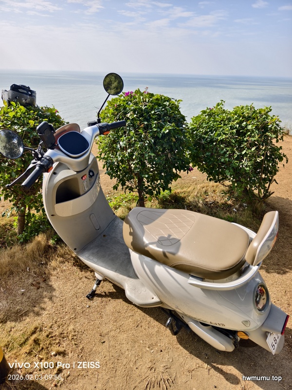 就这个,老板让选一辆,我就选了门口明显是她刚骑来的那一辆,换了100%电量的电池,简单请教了一下注意事项之后,就出发了。按老板给的攻略,逆时针转。环岛游的最佳方式就是这个东西,没有之一。