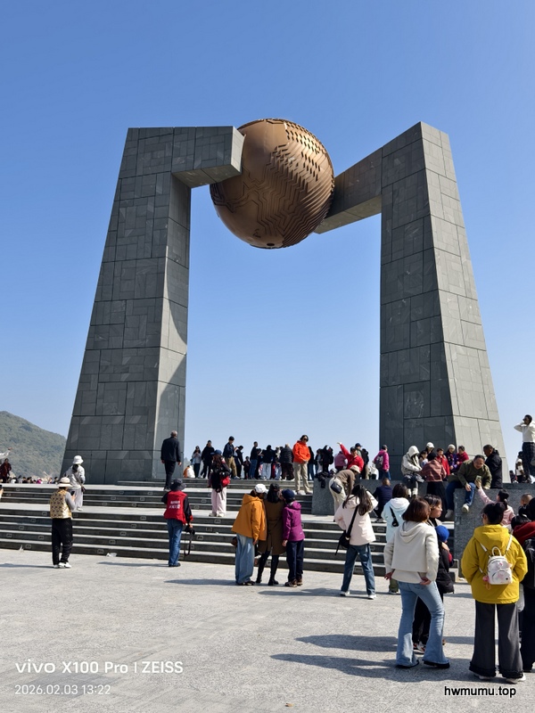 自然之门是位于青澳湾北回归线广场的北回归线标志塔,处于北回归线与我国大陆东岸的交点处,为我国建成的第11座同类标志塔,亦是广东省唯一海岛县境内唯一的海岛型北回归线标志塔。该塔由郑少文设计,采用汉字“门”字演变造型,球体半径3.21米对应春分日期,悬臂长6.22米对应夏至日期,总高12.22米对应冬至日期,门宽9.23米对应秋分日期,门柱倾斜角度对应北纬23.5°。每年夏至正午,阳光穿过球体中心圆管可形成“立杆不见影”现象,实际发生时间约在12时11分至12分。该塔与1986年建成的汕头鸡笼山北回归线标志塔形成山海呼应景观,所属北回归线广场占地33亩,由汕头市中环投资有限公司捐建。2024年9月5日,“自然之门”首次点亮景观灯光。作为我国境内北回归线标志塔群成员,其设计数据与天文节气精准关联。