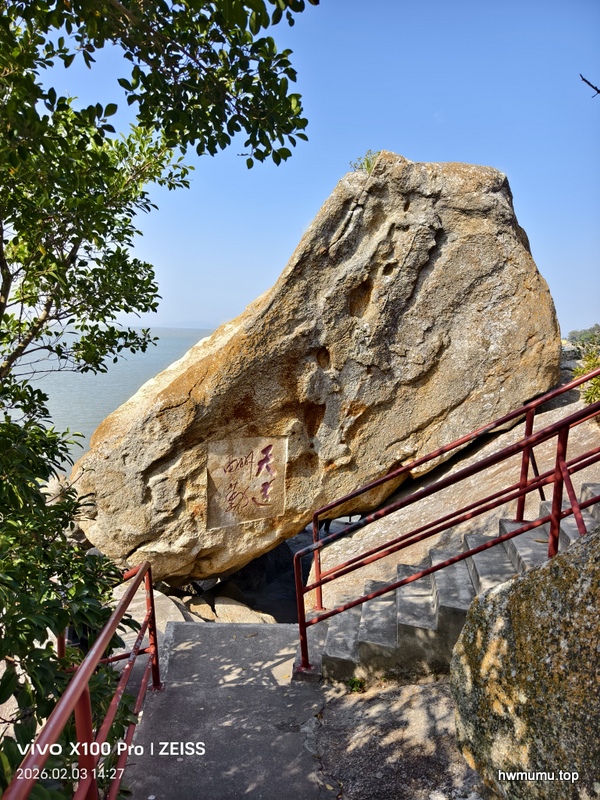 抵达礐石风景名胜区。位于濠江区礐石海南岸,与汕头老市区隔海相望,地处韩江、榕江、练江三江汇合出海处(北纬23度20分,东经116度40分),是国家AAAA级旅游景区,总面积13.47平方公里。1989年被评为广东省第一批省级风景名胜区,2020年1月1日起实行免门票政策,2021年通过广东省4A级旅游景区质量等级复核 ,现为潮汕地区首批国家AAAA级旅游景区,素有”汕头八景之首”美誉。
