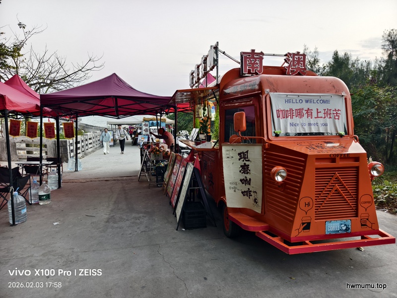 步行前往钱澳湾灯塔的路上,这辆咖啡车比较醒目。