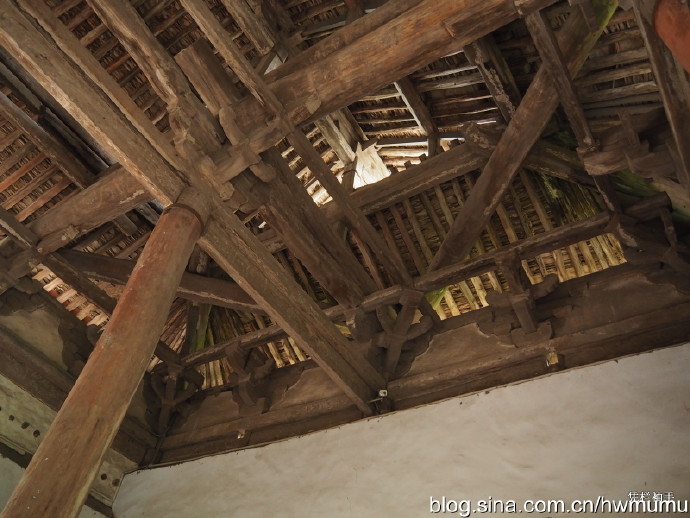 前殿五开间,悬山式,殿内仅用两根柱子, 形如人字柁架,构造奇特,设计精巧。