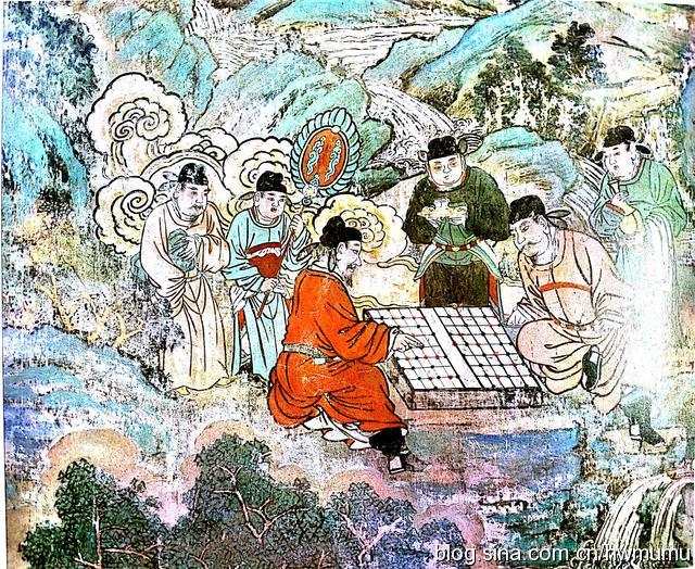 官员后面是西壁的求雨图、打球图 、下棋图等。